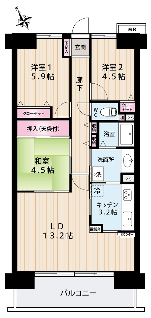 | 間取り | 2LDK+畳コーナー |