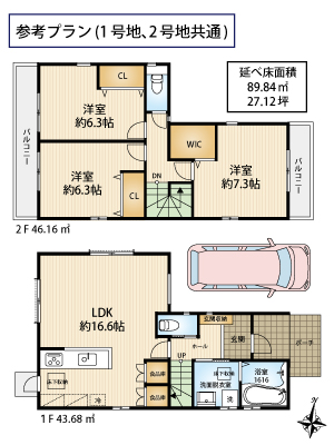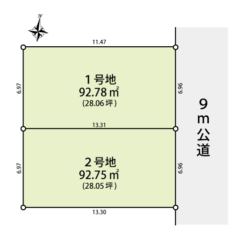 | 土地面積 | 1号地:92.78㎡、2号地:92.75㎡ |