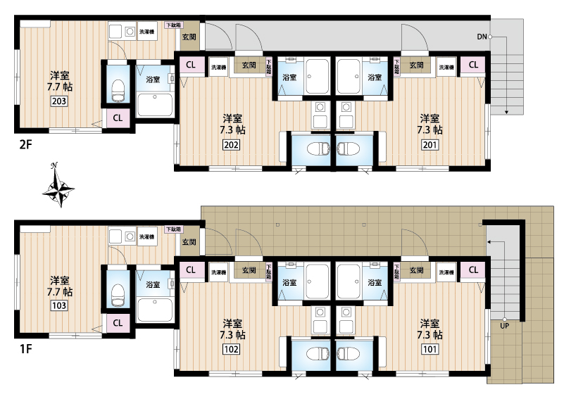 | 築年月 | 平成28年5月 | 総戸数 | 全6室(1階3室・2階3室) |