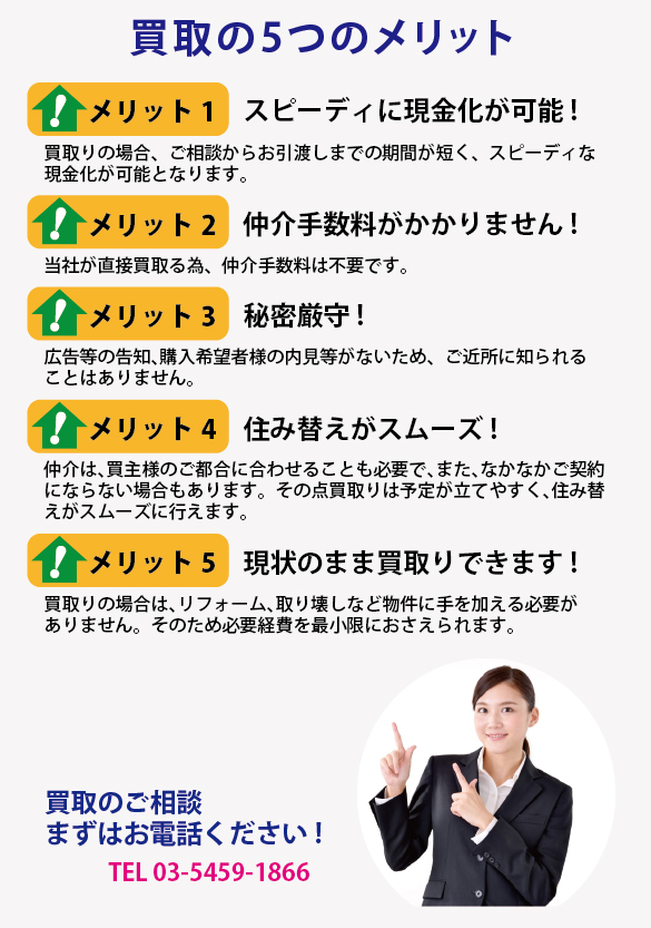 中古一戸建、中古マンション・区分店舗・区分事務所等をお客様から直接買取り、リノベーションを施し、販売する不動産買取再販事業を行っております。東京23区、埼玉県、神奈川県内を重点地区として積極的に買取り致します。お客様のご都合にも柔軟に対応致しますので、ぜひ一度ご相談下さい。